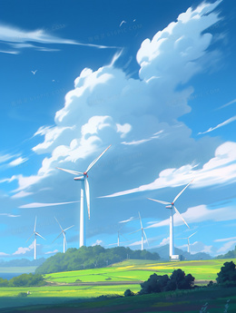 当前位置: 图精灵 > 背景图库 > 插画 > 卡通建在郊外的发电风车