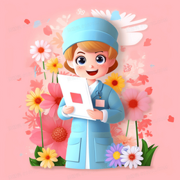 卡通风拿着病历本微笑的护士