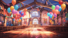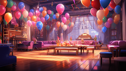 装饰着彩色气球的生日派对场景插画