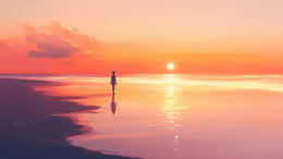 彩色卡通治愈风海边的女孩背景