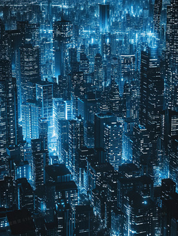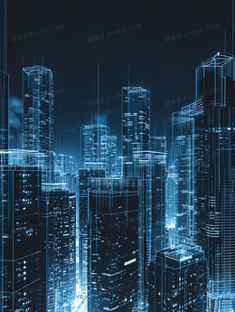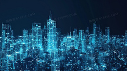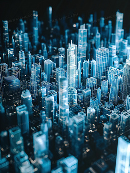 3D蓝光虚拟影像城市插画