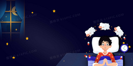 插画风失眠数绵羊夜晚星空背景