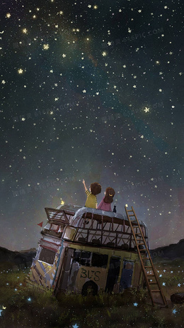 数星星的小朋友插画H5背景