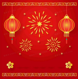 中式春节剪纸喜气过年灯笼烟花大红海报背景
