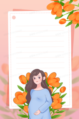 原创温暖清新的母亲节孕妇贺卡花朵植物背景