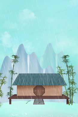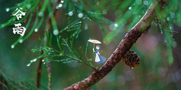 文艺摄影手绘合成谷雨节气打伞女孩背景