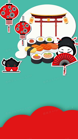 绿色扁平日本寿司H5背景素材