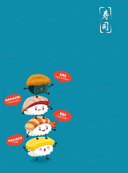 美味手绘寿司合成背景