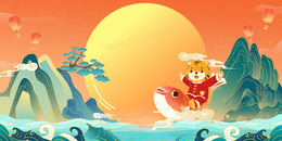 > 传统中国风2022年新年虎年春节国潮边框背景