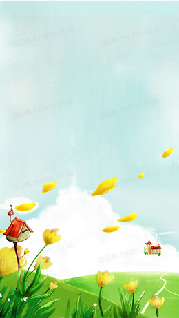 卡通创意春意春天春季惊蛰传统节日节庆绿色背景