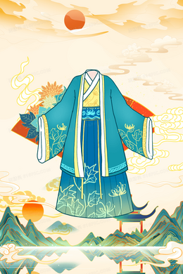 国潮风汉服山水背景