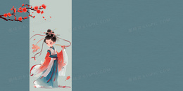 简约工笔画汉服美女背景