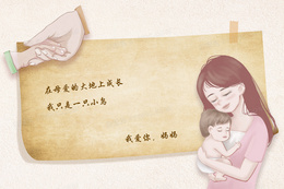 做旧信纸母亲节贺卡人物插画