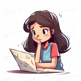 对着作业一脸痛苦无从下手的可爱女孩插画