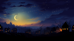 梦幻星空唯美城市港珠澳大桥渐变创意插画