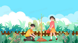 当前位置: 图精灵 > 背景图库 > 插画 > 卡通手绘女孩浇水植树插画