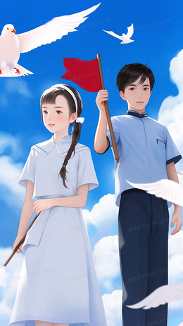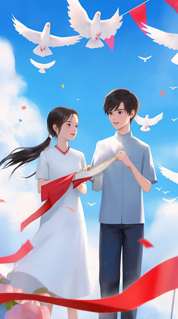 当前位置: 图精灵 > 背景图库 > 插画 > 毕业季穿着校服的学生站在蓝天白云下憧憬未来