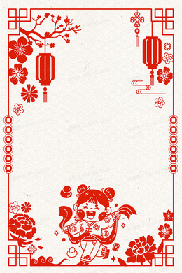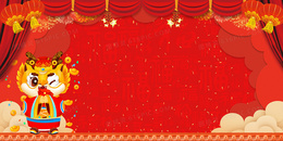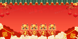 红黄简约喜庆中国风2024龙年剪纸节日宣传背景