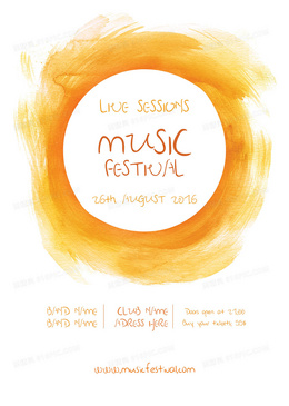 矢量水彩笔刷墨迹圆框文艺邀请函背景