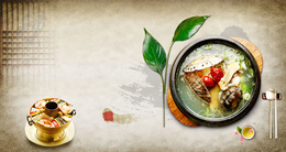 水墨山水粥店广告背景素材