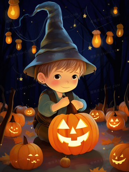 当前位置: 图精灵 > 背景图库 > 插画 > 卡通万圣节魔法巫师南瓜插画