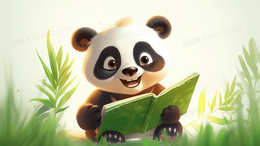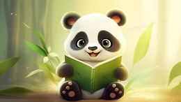拿着绿色书本的可爱大熊猫宝宝插画