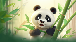 > 抱着绿油油竹叶的可爱大熊猫插画