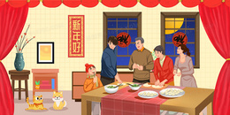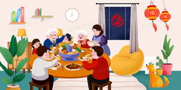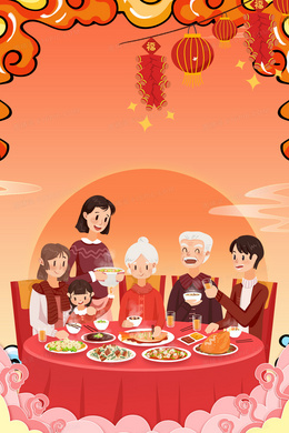 > 除夕年夜饭团聚插画