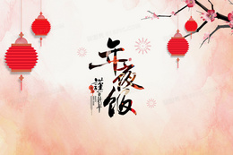 红色插画风格年夜饭背景