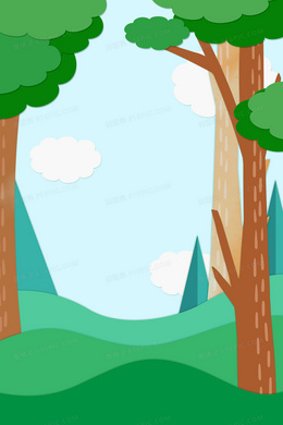 夏日唯美大树林子剪纸背景图