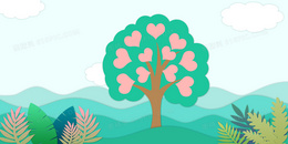 夏季唯美大树爱心剪纸背景图