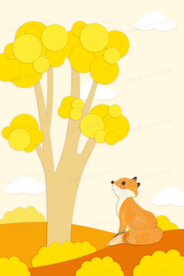 秋季唯美大树狐狸剪纸背景图