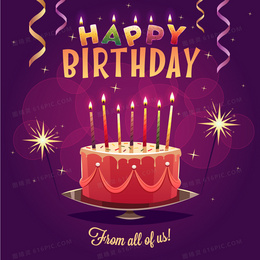 手绘生日蛋糕紫色渐变背景