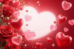 深红玫红渐变玫瑰心形背景