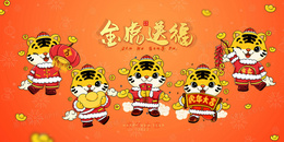 金虎贺岁可爱手绘虎年吉祥物插画背景