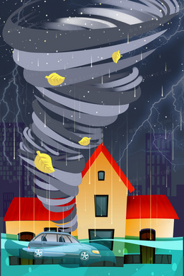 卡通龙卷风灾难预防插画