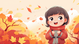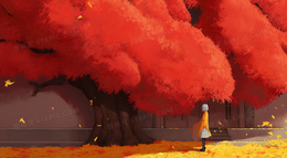 > 黄色秋天女孩站在枫叶树下插画