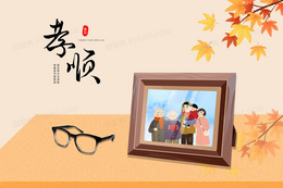 桌子上的全家福照片手绘插画