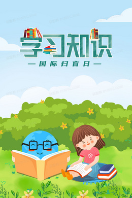 女孩在草坪上学习手绘创意插画