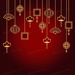 中式春节剪纸喜气过年灯笼烟花大红海报背景