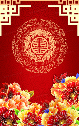 华丽牡丹中式传统婚庆背景素材