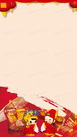 结婚喜宴新人古典红色H5背景素材