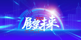 蓝色商务年会展望未来励志企业文化屏幕背景