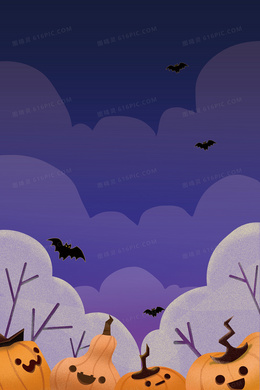 紫色卡通手绘万圣节插画背景素材