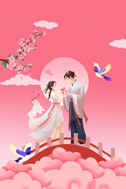 粉色浪漫七夕牛郎织女鹊桥相会背景