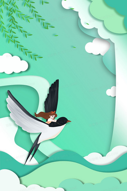 春季春分二十四节气绿色小清新开花蝴蝶背景