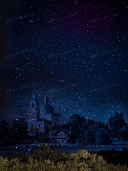 梦幻星空古堡蓝色背景图
