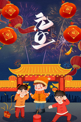 元旦烟花儿童庆祝插画