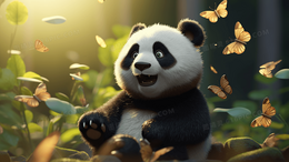 当前位置: 图精灵 > 背景图库 > 插画 > 卡通大熊猫在森林与蝴蝶玩耍插画