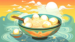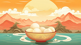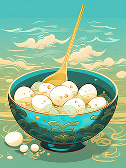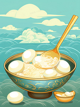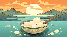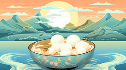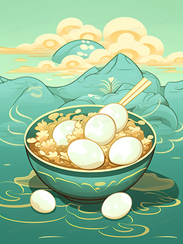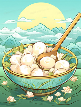 绿色山水国潮新年喜庆元宵节汤圆插画